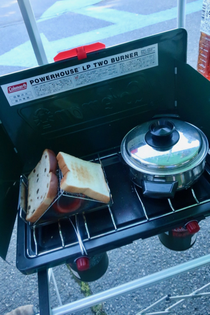 キャンプでは、バーベキューとビールで盛り上がる。