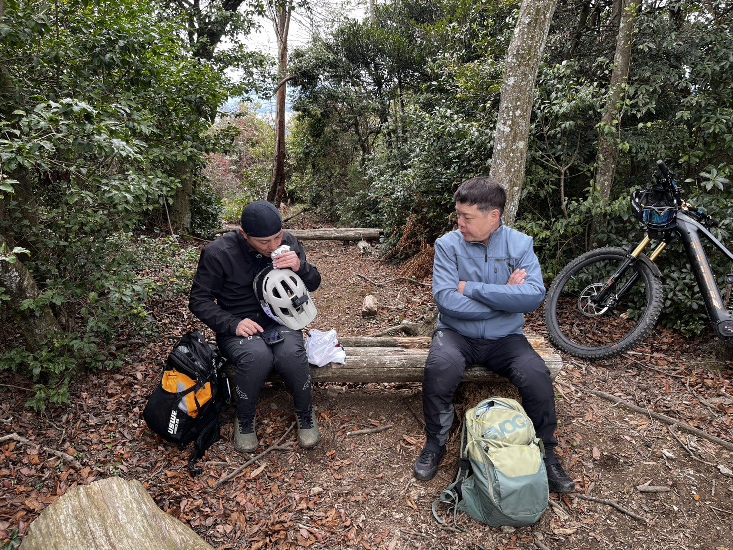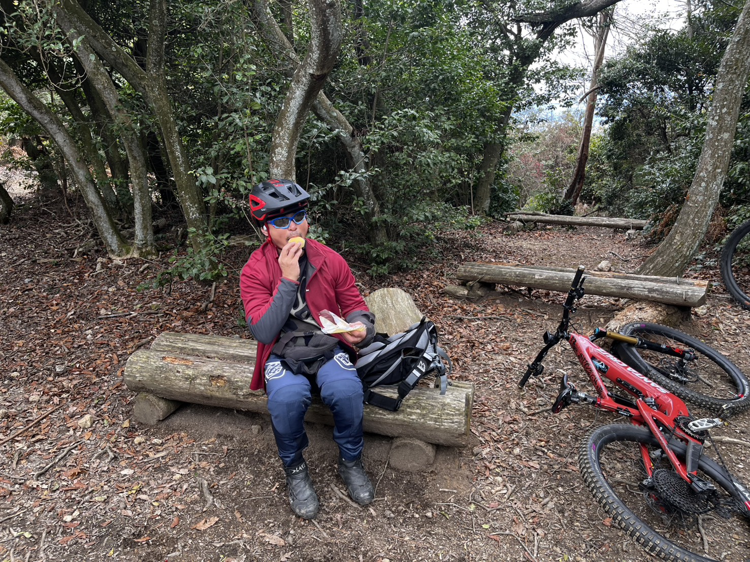 途中、山の中でひと休憩。