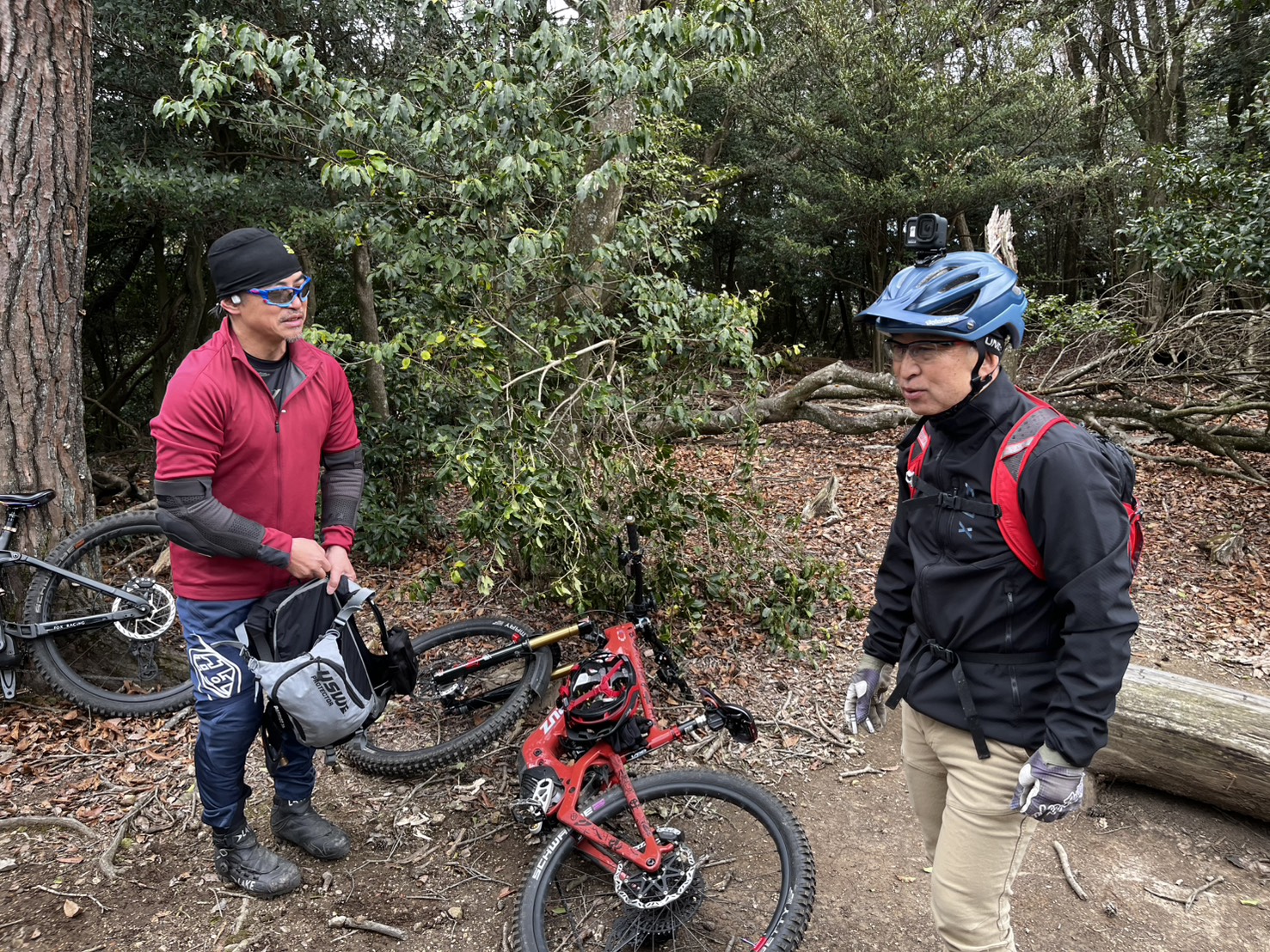 軽く補給をしながら自然と始まるMTB談義。